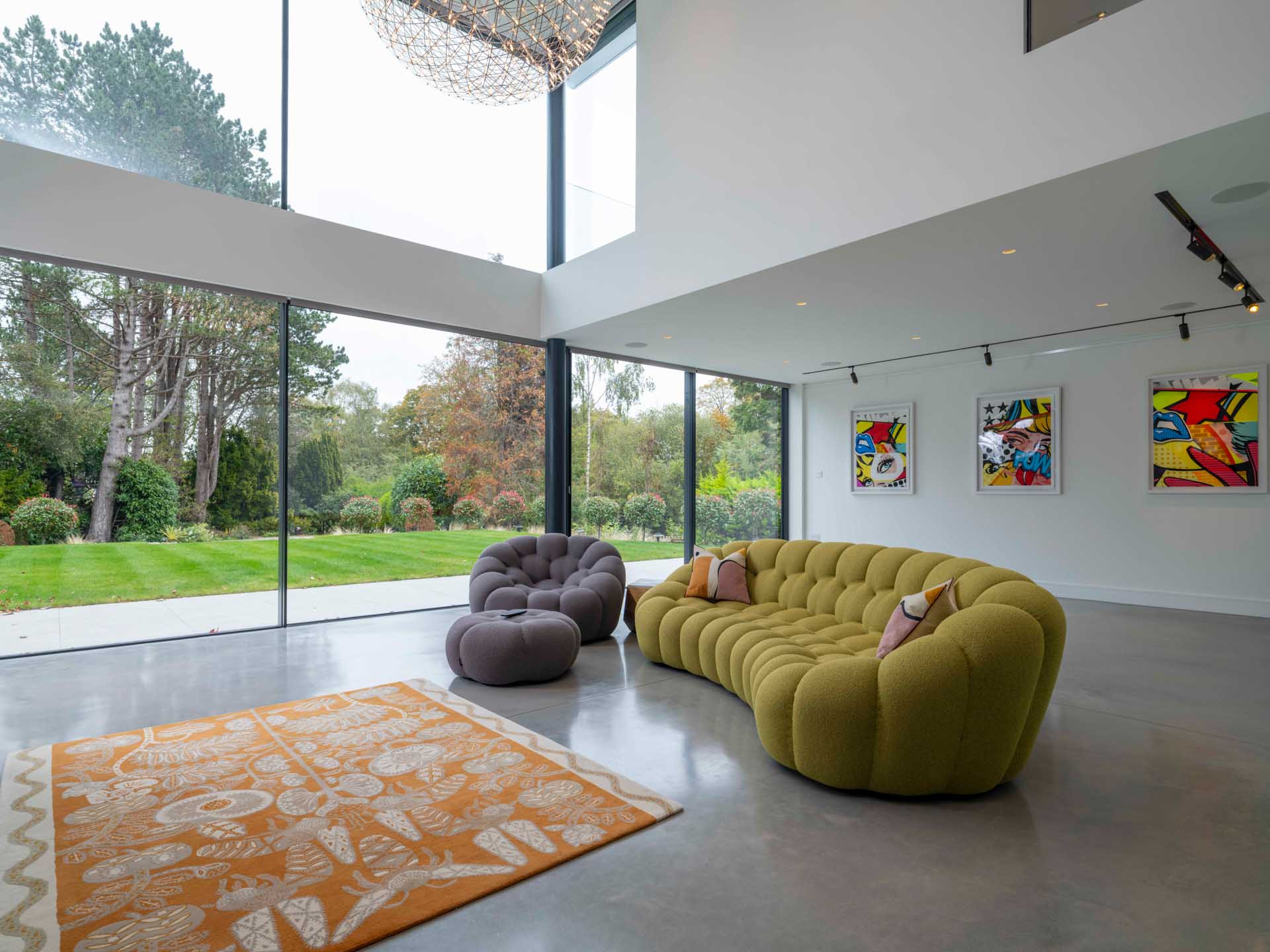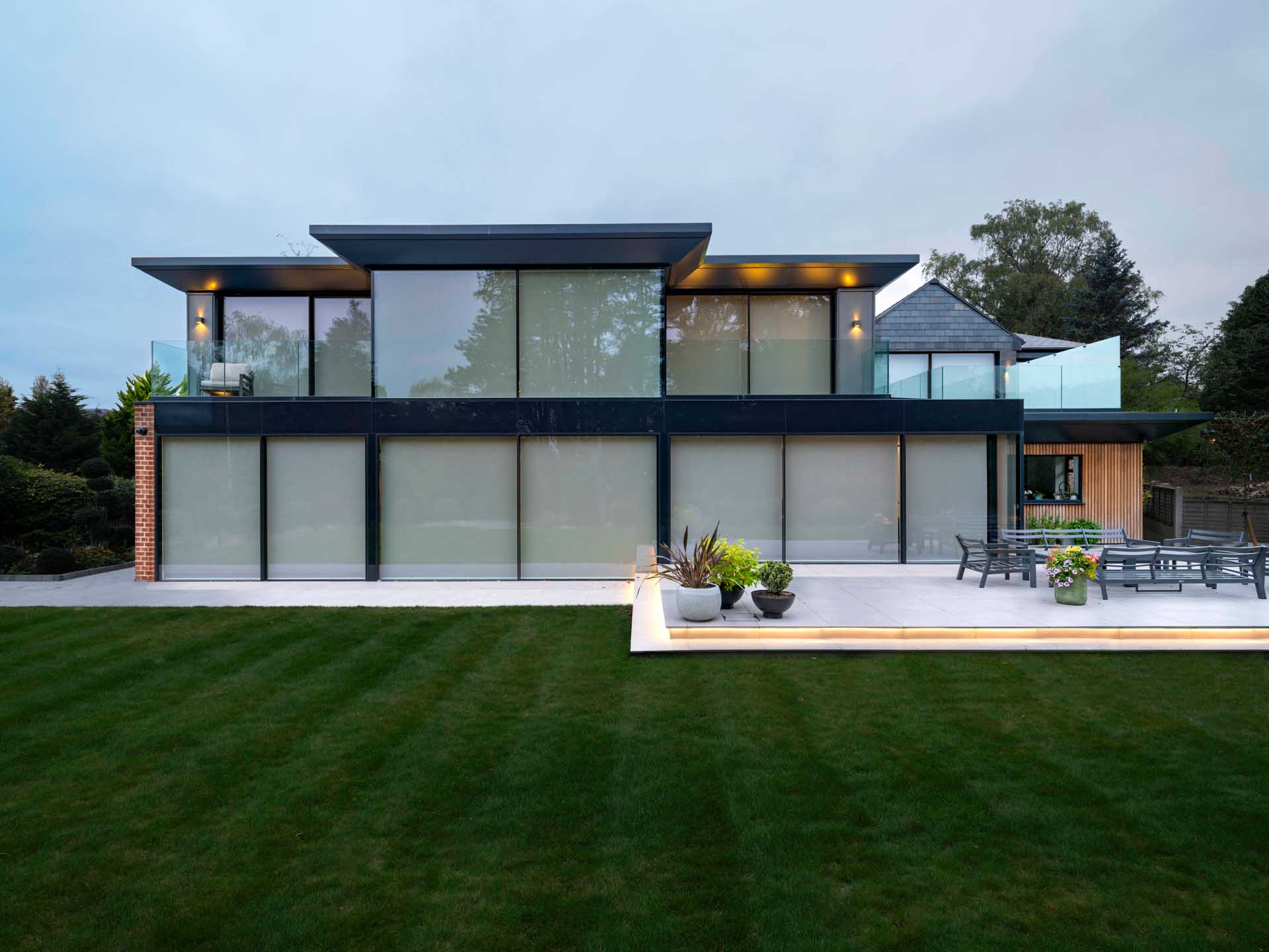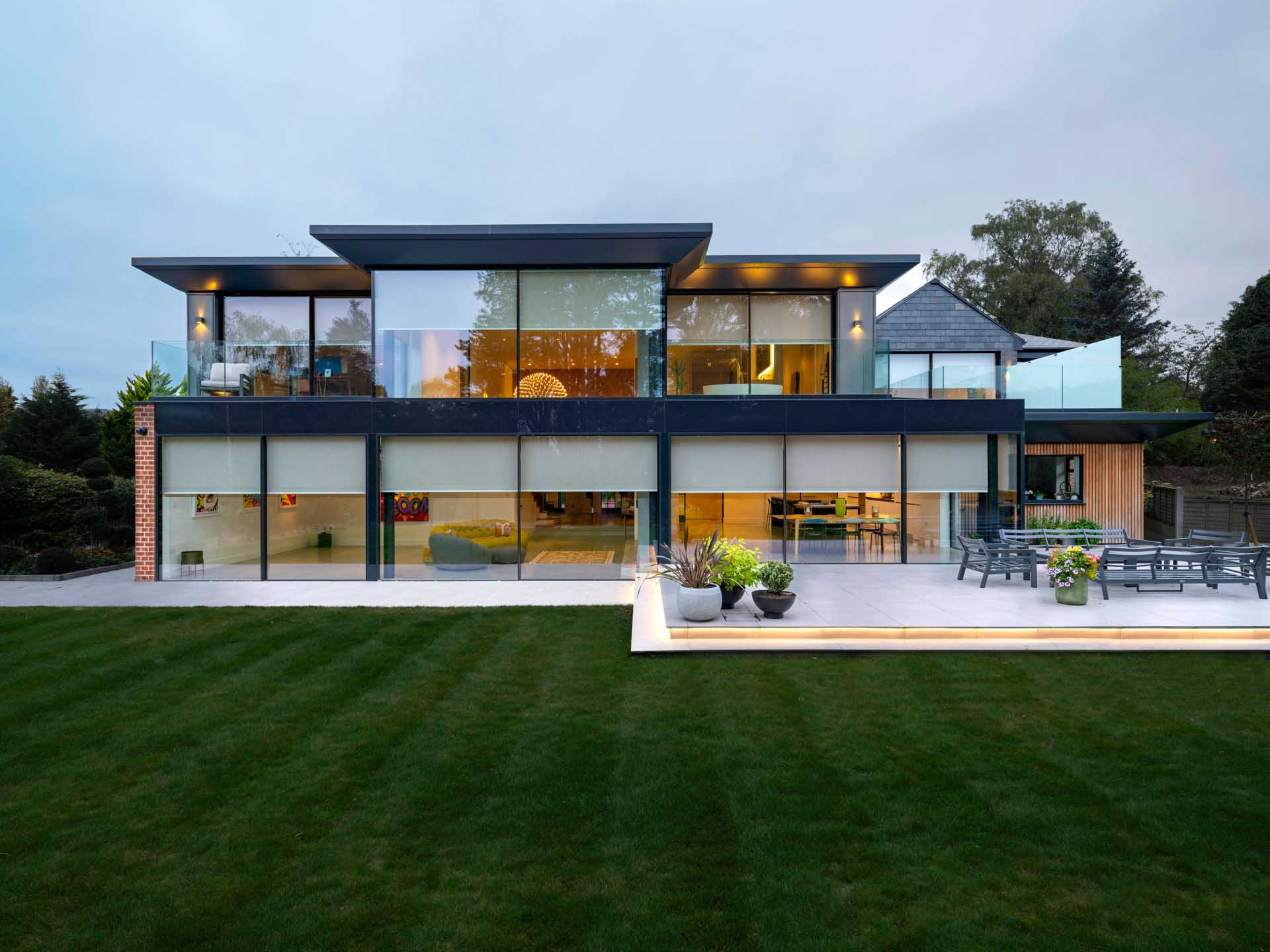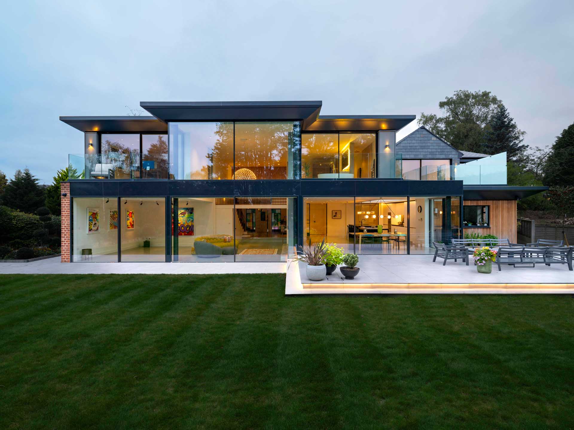 This stunning family home in Yorkshire is packed with architectural features, including an almost entirely glazed rear façade, offering unobstructed views out to the beautiful gardens.